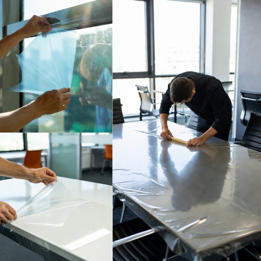 Desktops and Workstations Shield office desks and workstations from scratches, stains, and wear, keeping urfaces pristine. Conference Tables and Reception Desks Prevent scratches and damage to conference tables and reception desks from frequent use, ensuring a professional appearance.