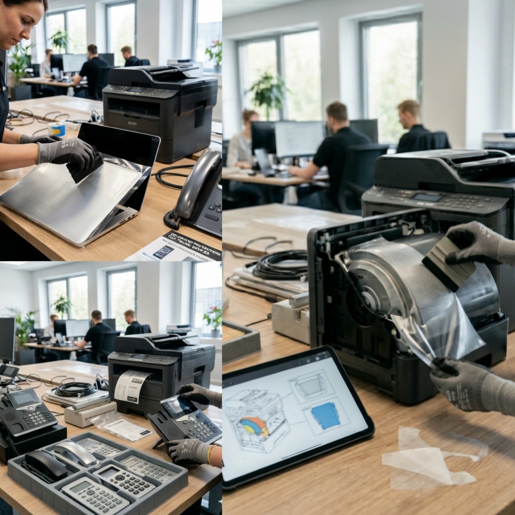 Electronic Devices Protect the exterior of computers, printers, and other office equipment from scratches and daily wear, extending their lifespan. Phones and Conference Equipment Provide extra protection for office phones and conference systems, preventing wear from frequent handling.